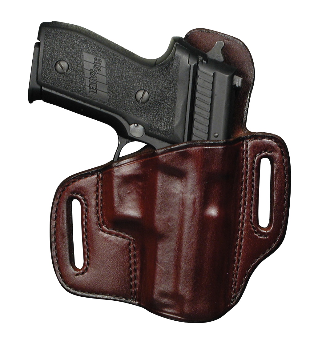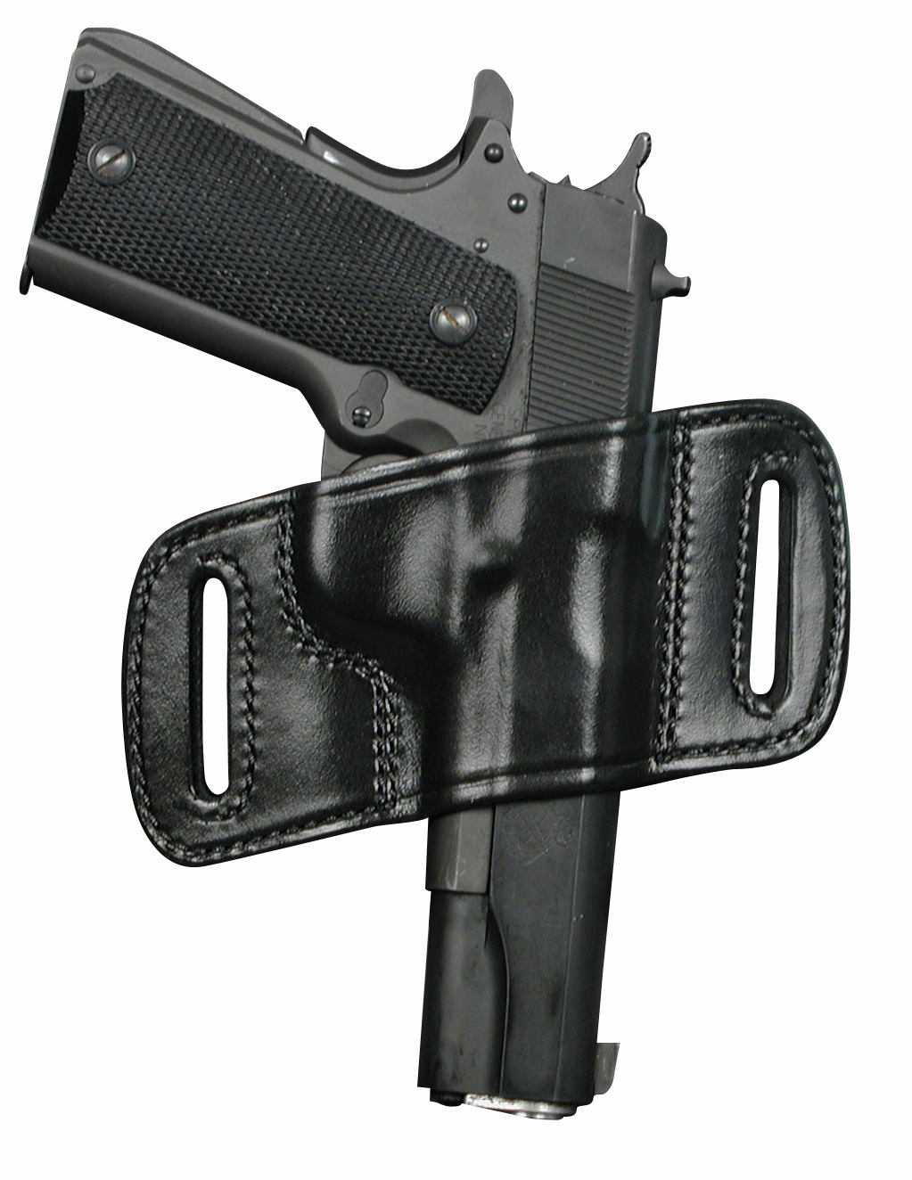 The design of this open top holster allows for an instant shooters grip. The J.I.T. Slide has an open muzzle, which will accommodate different barrel lengths of the same gun model or similar frame size. Center belt loop & a side covered belt slot pulls the firearm close to the body and fits belts up to 1 3/4".