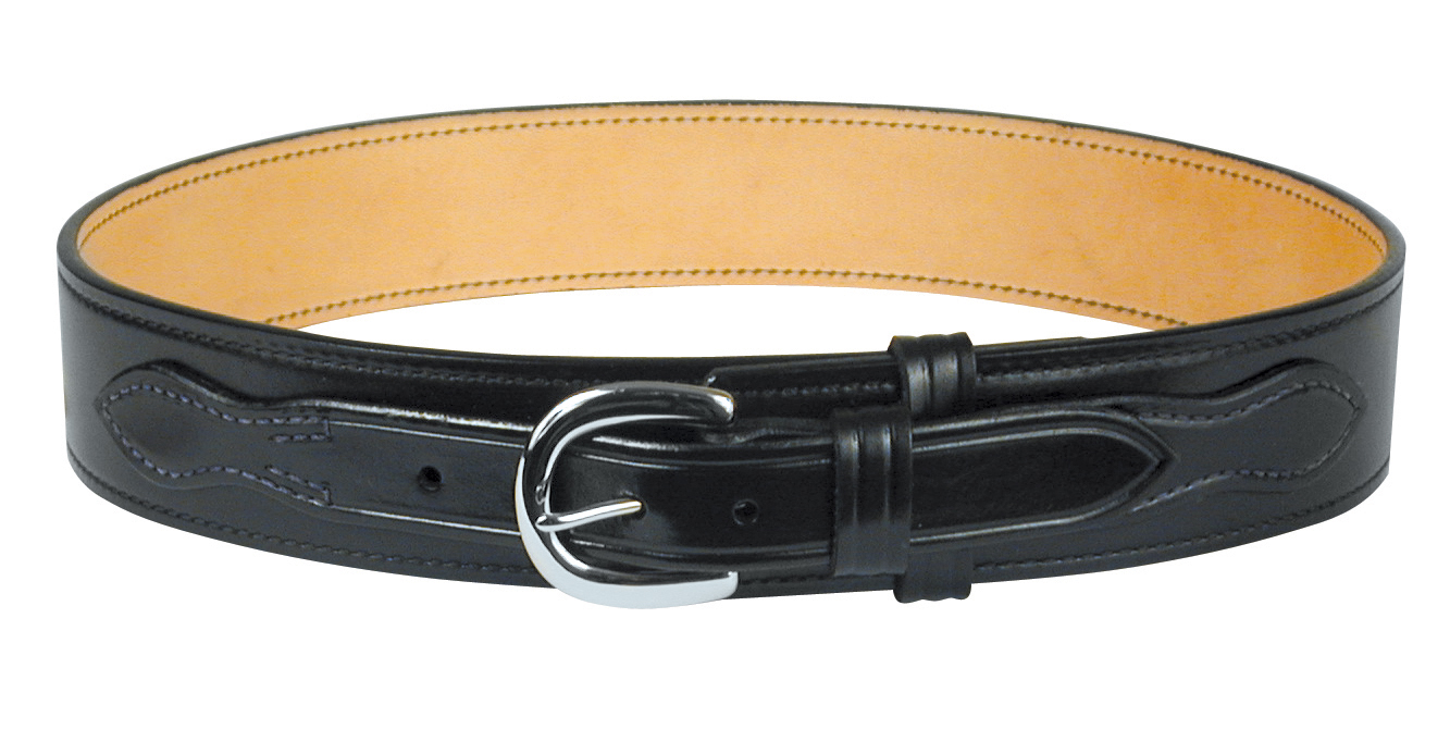 The model B106 is a border patrol style duty belt. Has a billet type closure and heavy solid brass buckle. Made to a total thickness of 13/14 oz. accompanied with a 9/10 oz. billet. Fully lined and the edges are sewn.