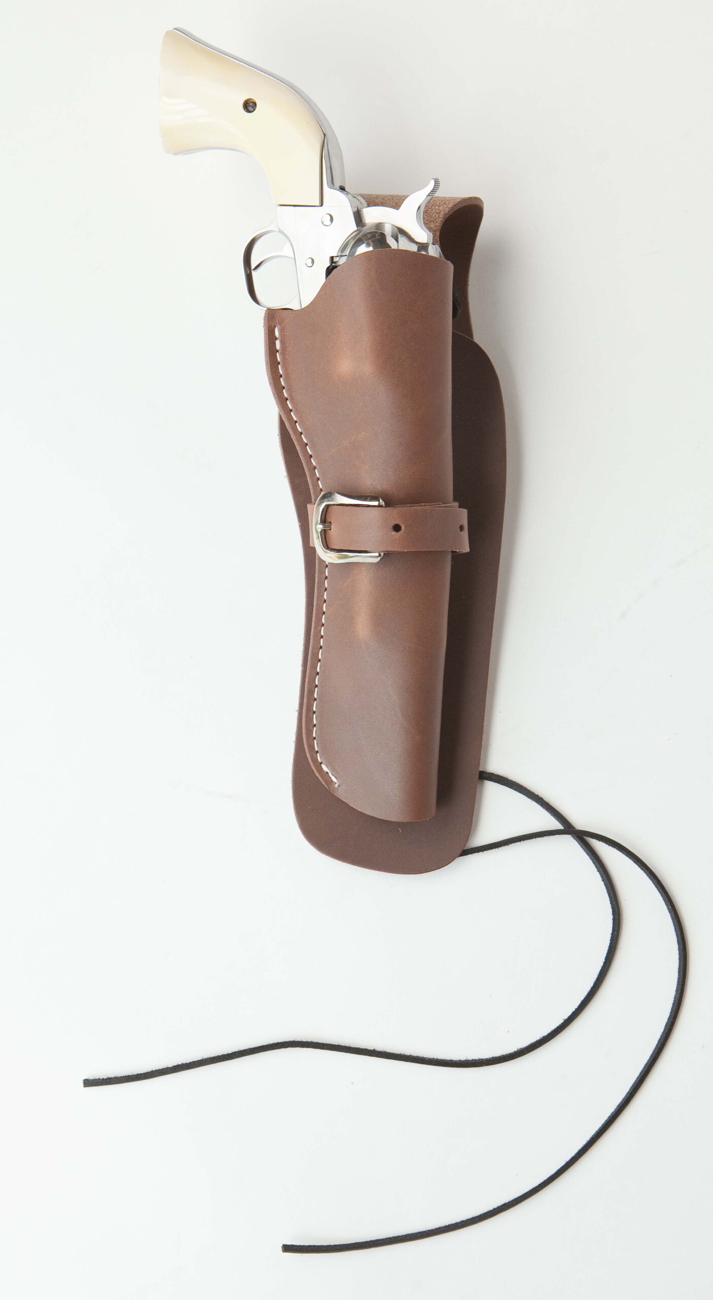 Holsters have both a leather hammer thong and a leather leg tie.