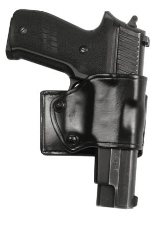 Y.S.O. incorporates two screws with rubber washers for tension adjustment. On the back side is a cut-out for the pant belt loop and two holes for the tension screw adjustment. It's designed to accommodate more than one gun by use of the tension screws. Four sizes will fit most guns. Fits belts up to 1 3/4".